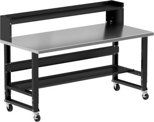 For practical organization and storage, the design thoughtfully includes a full-length bottom shelf and an additional ledge shelf above it. These tiers offer abundant space to keep tools, components, and supplies neatly arranged and within easy reach. The inclusion of sturdy casters transforms this robust station into a highly functional heavy-duty mobile workbench. This mobility allows you to effortlessly reposition the entire workspace wherever it’s needed most in a garage, studio, or commercial setting.