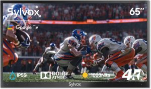 Creating a comfortable backyard entertainment space often requires technology that can handle the elements while delivering excellent performance. The SYLVOX Outdoor TV is designed specifically to bring high-quality viewing to your patio or deck without compromising on durability. With a massive 65-inch screen, this Deck Pro 2.0 model aims to transform how you watch movies, sports, or favorite shows in open-air environments. Unlike standard indoor screens which might struggle with brightness outside, this unit boasts 1000nits of luminance. This high brightness level is crucial for maintaining clear visibility even when placed in a Partial Sun Area, ensuring that natural light does not wash out the image during the day.
