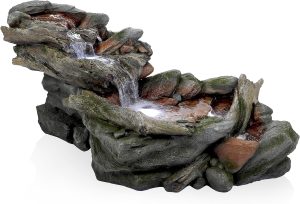 Visually, the unit captures attention immediately. It features three distinct levels that allow water to flow gently from top to bottom, creating a dynamic sense of movement. The structure is hand-painted to achieve an authentic look, capturing the detailed textures of river stones, moss, and worn logs found in a rainforest. This attention to detail ensures it complements your existing plants rather than clashing with them. Beyond the visuals, the sound of trickling water promotes mindfulness and effectively masks unwanted neighborhood noise.