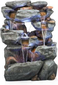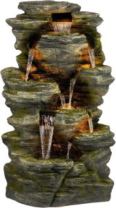 Water cascades gently down a distinct 5-Tier Rock Waterfall Fountain design, creating a soothing acoustic backdrop that helps mask unwanted neighborhood noise. This continuous, rhythmic flow brings a profound sense of tranquility to open-air gatherings or solitary moments of reading and relaxation. Unlike smaller tabletop accents, this floor-standing unit commands attention and fills vertical space effectively. The realistic texture adds rustic charm, significantly enhancing the aesthetic appeal of decks, porches, or sprawling lawn areas.